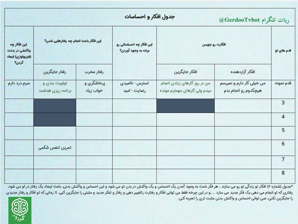 و جدول شماره ۲ را متناسب با تجربیات امروز خودت پر کن.